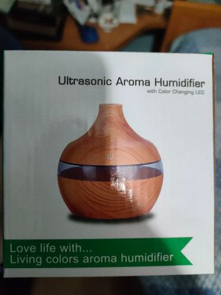 Humidificador de ambiente con diseño en madera y luz LED. Fue un regalo pero ya tenía otro por lo que esta sin usar.