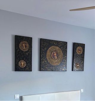 Cuadro central: 70 cm (ancho) x 70 cm (alto). Cuadros laterales (cada uno): 35 cm (ancho) x 70 cm (alto).