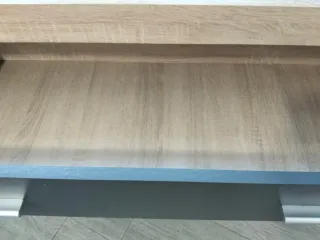 Mesa de escritorio con un diseño moderno y funcional. - Tablero de madera clara. - Patas de metal blanco. - Medidas 100 cm x 48 cm x 73 cm de alto - Defeto en esquina del tablero (se muestra en la ultima foto) de ahí su precio