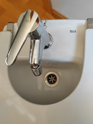 Bidé de la marca Roca, con un diseño elegante y funcional. - Fabricado en cerámica de alta calidad. - Color blanco, fácil de integrar en cualquier baño. - Grifería cromada incluida. -Bidet solo 60 euros. Solo griferia 20.