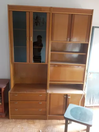Mueble modular de madera con puertas de cristal. - Diseño moderno y funcional. - Amplio espacio de almacenamiento. - Acabado en madera clara. Recogido calle pinto