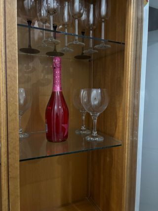 Preciosa vitrina de madera con puertas de cristal. - Diseño elegante y funcional. - Ideal para exhibir objetos decorativos o vajilla.