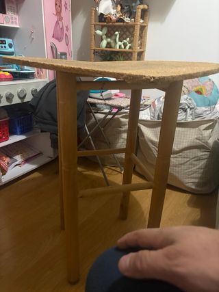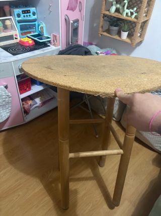 Mesa auxiliar con superficie de corcho y patas de madera. - Diseño sencillo y funcional. - Ideal para espacios pequeños.