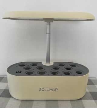 A estrenar. Nuevo en su caja original. Sistema de cultivo hidropónico para interiores GOLUMUP. Permite cultivar plantas sin tierra, utilizando agua y nutrientes. - Diseño compacto para interiores. - Incluye sistema de iluminación LED. - Bomba de agua silenciosa.