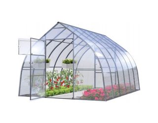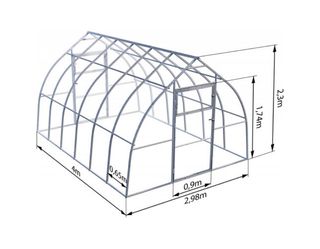 invernadero ideal para todos aquellos que quieran disponer de un sitio donde criar su pequeño huerto sacar planta de huerta o flores, tambien para guardarlas en invierno. con una superficie de 8,9 metros cuadrados con una fabricacion robusta de aluminio y policarbonato y base galvanizada. alto 250cm largo 365 cm ancho 244 cm se sirve en dos embalajes uno de 1420x730x140 mm y el otro 3680x240 140