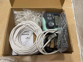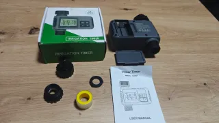 Programador de riego automático para el jardín huerto invernadero . Incluye accesorios para su instalación. - Pantalla digital. - Botones de control. - Conexión para manguera.