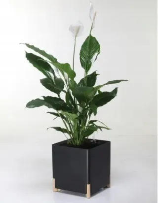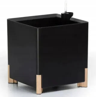 Elegante maceta de diseño moderno, ideal para dar un toque sofisticado a tu hogar o jardín. Cuenta con un sistema de riego integrado y patas que elevan la base. - Acabado en color negro mate. - Patas de madera que aportan calidez. - Indicador de nivel de agua. Tipo Macetas de pie Forma Cuadrado Material Plástico Color Negro