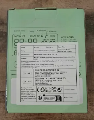 Este temporizador de riego es fácil de usar y configurar para un riego preciso y flexible. - Pantalla digital clara. - Ajustes de tiempo de riego personalizables. - Resistente al agua (IPX5). - Funciona con 2 pilas AA de 3V.