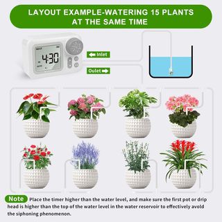 Kit de Riego por Goteo Automático, Sistema de Riego Automático para Plantas y Macetas de Interior, con Modos de Riego Automático.Pantalla LCD y mandos giratorios.duración del riego (1-59 segundos/1-30 minutos). CON QUE FRECUENCIA- Frecuencia de riego (1-23 horas/1-30 días).Utiliza un 70% menos de agua que los difusores y goteros tradicionales.NUEVO EN SU CAJA