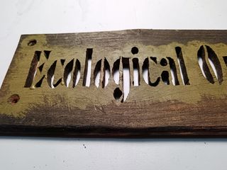 Letrero troquelado artesanalmente (A mano) "Orchard Ecological" en madera vieja, para adornar tu huerto ecológico. solo envio por InPost de Wallapop,.. por motivos de desplazamiento. Gracias.