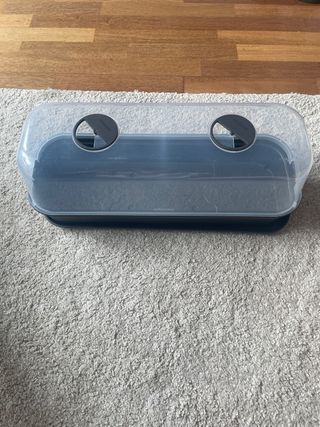 Mini invernadero con tapa transparente para proteger tus plantas. - Bandeja base de color oscuro. - Tapa de plástico transparente con ventilación. Medidas: 36x26x20cm