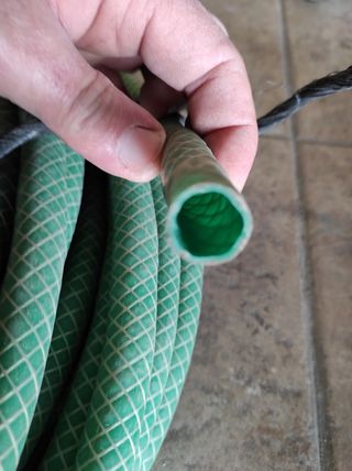 muy usada, sin boquillas ni tomas de unión, 8 metros aproximadamente, diámetro interior 16mm.