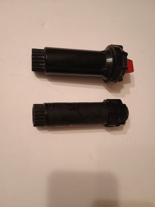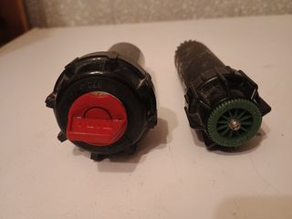 Aspersores riego. Uno de corto y otro de largo alcance.