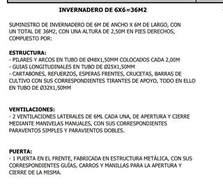 Se vende estructura de invernadero en perfecto estado. 6m x 6m. Con ventanas laterales a lo largo. Desmontarlo y transportarlo a cargo del comprador. Adjunto foto de un presupuesto de la estructura nueva sin montaje ni transporte.