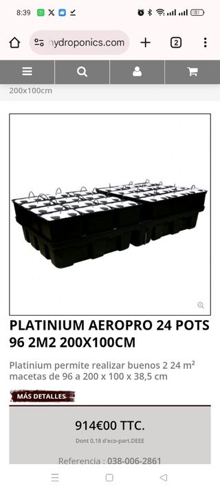 Equipo proofesional completo valorado en más de 6000€. Infractor extractores rvk de 350 y 1080 con cajas silenciadoras. 4 bombas de agua de 3500l/H 2 depósitos de 500 L Sistema aeroponico platinum aeropro 24 macetas para 96 plantas de 2 metros * 1m 1 foco lec Lumii de 630w máxima producción. 1 foco sodio de 600w con adjust a wings 1 raillight de 2m que va moviendo los focos. Controlador de extracción automático de temperatura y humedad ecotecnics Termostato higrostato. Controlador de temperatura de agua. 1 medidor pH y ec con sonda Milwaukee. 1 bio filtro aeroponico GHE. Redes de enmalle. Esquejador aeroponico xstream 120 y más...