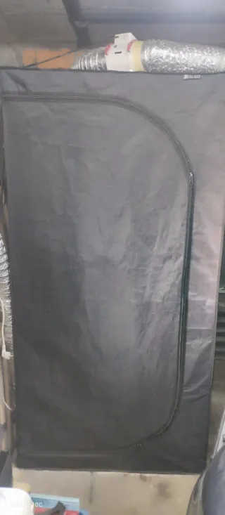 Kit de cultivo para interior. - Tienda de cultivo negra. - Conducto de ventilación plateado.