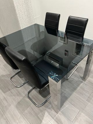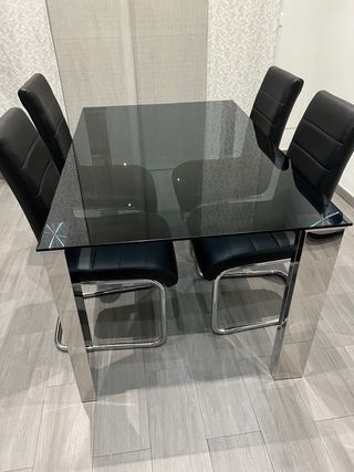 Mesa comedor cristal negro y 4 sillas
