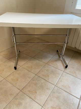 Mesa de cocina en perfecto estado con estructura de acero inoxidable, robusta, muy resistente y tabla de mesa de formica. - Diseño moderno y funcional. - Patas metálicas resistentes. - Ideal para espacios de cocina o comedor