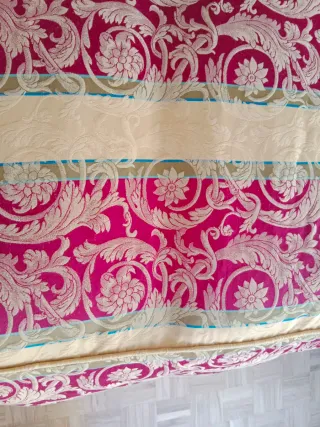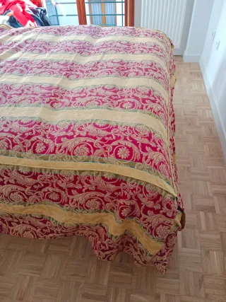 Colcha de verano con un bonito diseño. Mide 147 cm de ribete a ribete, válido para camas de 1,35 y de 1,50. Se puede entregar en mano en distintas localidades de Aragón, si te interesa preguntame. - Tejido con estampado floral. - Tonos rojos y amarillos.