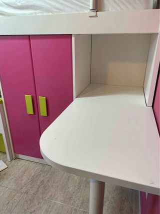 Escritorio funcional con estantería integrada. Ideal para espacios de estudio o trabajo. - Diseño moderno y compacto. - Superficie de escritura amplia. - Estantería con baldas para almacenamiento. -Medidas: 327-102-150 A recoger en domocilio