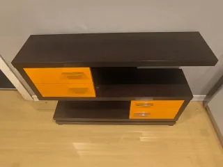 Mueble recibidor con un diseño moderno y funcional. - Acabado en wengue y naranja. - Madera. No se hace envío. Precio fijo, no se regatea.