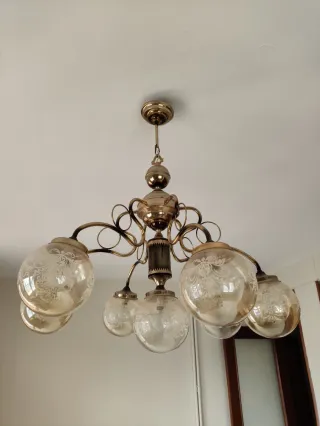 Lámpara de techo cristal y metal dorado