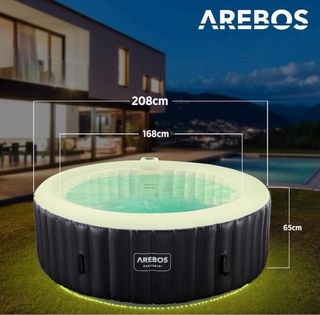Arebos SPA Hinchable | Inflable automático | para Interior y Exterior | ⌀ 208 cm | 6 Personas | Banda Luminosa LED | 130 boquillas de Masaje | 1000 L | Incluye Cubierta | Bubble SPA & Wellness Masaje