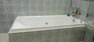 Bañera de hidromasaje en excelente estado, casi sin uso. Podría ayudar a trasladarla. - Diseño moderno y elegante. - Acabado interior blanco brillante. - Borde exterior en tono grisáceo.