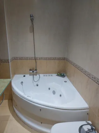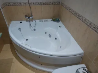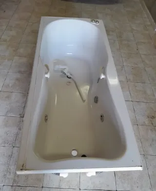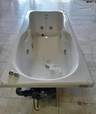 Bañera de hidromasaje con diseño moderno. Chollo Preciosa bañera d hidromasaje jacuzzi, en color blanco.con cas ada . Es de acrílico y tiene un diseño elegante y moderno. No se la marca Preciosa bañera de hidromasaje jacuzzi. Tiene un picotazo pequeño q habria q reparar sale en las fotos con una masilla y el faldón se rompió y está reparado tal y como se ve en las fotos. el comprador debe desmontarla . La marca no la se Se encuentra un chalet - Tiene varios jets para disfrutar de un masaje relajante. - Incluye varios jets para hidromasaje. - Dispone de un cómodo reposacabezas integrado. Se encuentra en buen estado. - Sistema de cho