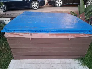 Jacuzzi de 8 plazas en muy buen estado. Lo compre de segunda mano pero no he llegado a instalarlo, me lo comprovo un profesional y funciona perfectamente. Lo vendo porque cambie de opinión y voy a instalar una piscina. El exterior esta instalado sobre una estructura metálica muy buena y se puede revestir del material que se desee. El interior es de color blanco con muy buen aspecto, esta muy bien conservado. Mide 2,20 x 2,20. Su dueño anterior me dijo que le dio muy poco uso, y yo ninguno. Le compre un toldo para protegerlo y hay esta. Se puede ver sin compromiso. Me costó 1300 €. Lo dejó en 1000 €. Para contactar a través del Wha