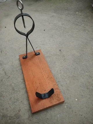 Soporte profesional para jamones, ideal para cortar con comodidad. - Base de madera. - Soporte metálico giratorio. - Escuadra metálica para ajuste.