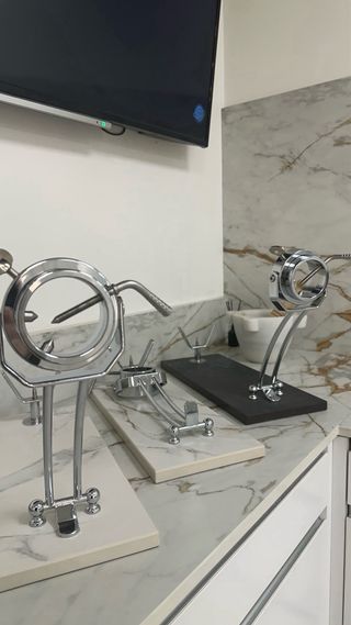 Jamonero de alta calidad con base de silestone y detalles metálicos. - Diseño giratorio para facilitar el corte. - Base de silestone en color blanco. - Soporte y herrajes metálicos en acabado plateado. - Ideal para uso profesional o particular. Pagado mas de 300€
