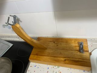 Repisa botellero, de madera de olivo 100 centemario para 15 botella. Y jamonero de capricho de raíz de olivo centenario. Se vende por separado... Jamonero 65 Es de exclusividad.. Ajustable. Comprobado las medidas con jamones entra perfectamente..