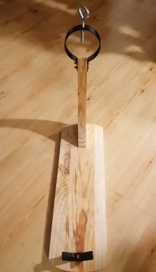Solo un uso. Soporte para jamón con base de madera. - Base de madera robusta. - Elementos de sujeción de metal.