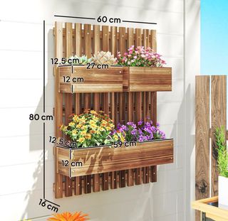 - Jardinera de exterior con celosía que también puede servir como separador de ambientes - Conjunto decorativo ideal para tus plantas trepadoras y enredaderas o para colgar macetas - Diseño espacioso con una maceta grande y profunda en la parte inferior para cultivar flores, vegetales, plantas, etc. - Material: madera de abeto - Medidas totales: 70x28x117 cm (LxANxAL) - Grosor del tablero: 0,9 cm - Carga máxima: 50 kg - Referencia: 845-635