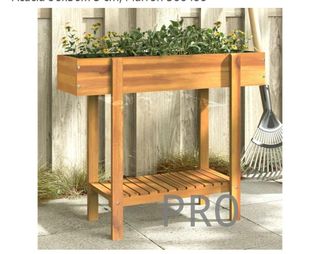 Jardinera alzada de madera con estante y resistente 119x57x90cm marrón