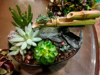 es una fuente adaptada a jardinera con suculentas naturales,bonito regalo disponible