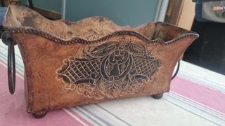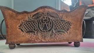 Preciosa caja de matera multiusos, barnizada a mano y decorada con elegancia, las tengo como jardineras con flores secas y quedan preciosas. En la última foto os doy una idea de como quedan, está la tengo puesta en mi casa.