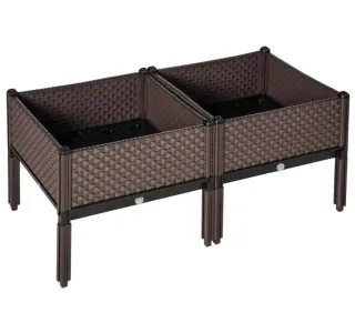 Este conjunto de macetas incluye dos jardineras elevadas, ideales para cultivar flores, verduras o hierbas separadamente según lo necesites.Los maceteros incorporan un disco inteligente que almacena el agua sobrante, permitiendo que las plantas absorban la cantidad necesaria y evitando el exceso de riego. Además, cuentan con orificios de drenaje para controlar el agua acumulada.Fabricada en polipropileno reforzado, este conjunto de macetas es ligera y resistente a la intemperie. Está diseñada para soportar varias temporadas y aportar estilo y funcionalidad a tu jardín o terraza.