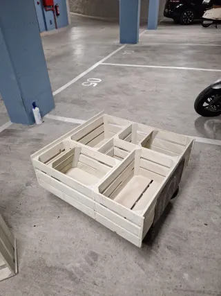 Conjunto de jardineras de madera con un diseño modular. - Estructura robusta. - Acabado en blanco. - Múltiples compartimentos.