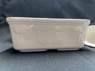 sirve para poner maceta de largo veinticinco por once es de porcelana pintada a mano es preciosa tiene pequeños desgastes que ya están disimulados es de una marca muy buena hago envíos por wallapop