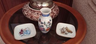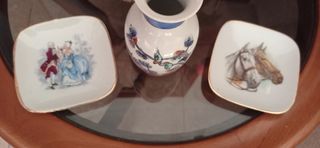 Jarrón y bandeja-plato calado de cerámica o porcelana china. Muy buen estado. Comprado en el Corte Inglés. Se incluye el trípode-expositor de metal que se ve en las fotos. Hago envíos por wallapop envíos. *****