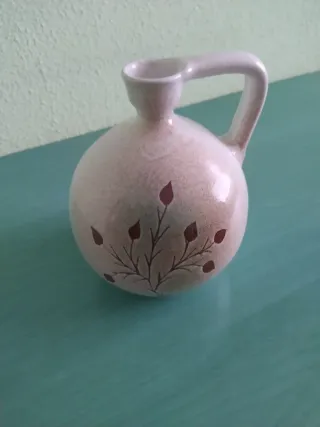 Pequeño jarrón de cerámica con un diseño floral delicado. Ideal como adorno. - Acabado en tonos beige con detalles en rojo. - Motivo de ramas y hojas pintado. En perfecto estado, mide de alto unos 14cm, urge venta por jubilación y pre mudanza, precio negociable.