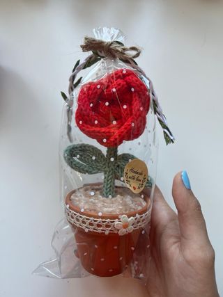 Flores crochet en maceta de barro