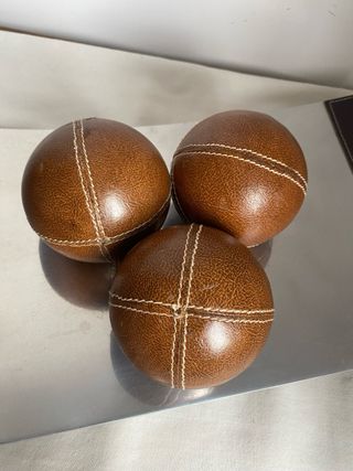 Elegante centro de mesa con un diseño moderno. - Base metálica reflectante. - Detalles en cuero marrón. - Costuras blancas decorativas.