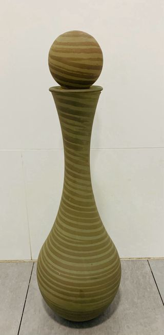 Elegante jarrón decorativo para el hogar. - Diseño alto y estilizado. - Combinación de colores tierra y verde.