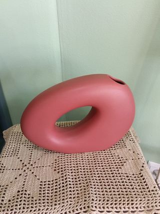 Precioso jarrón de cerámica, ideal para decorar cualquier espacio. Es de color rosa y tiene un diseño moderno y elegante. - Perfecto para flores o como elemento decorativo. - Presenta un diseño único y sofisticado. - Pieza de cerámica de excelente calidad.