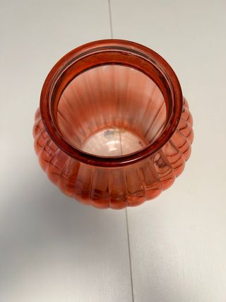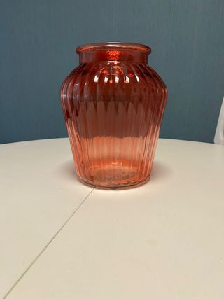 Elegante jarrón de cristal con un diseño acanalado que añade textura y estilo. - Color rojo translúcido. - Material de cristal.