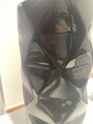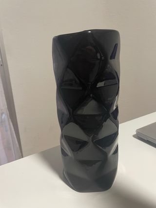 Jarrón decorativo de color negro con diseño geométrico moderno. Ideal para decoración, flores secas o como pieza decorativa. Altura aproximada: 25 cm Diámetro de la boca: aprox. 9 cm En buen estado, sin roturas.
