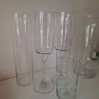 Set de jarrones de cristal. - Diseño elegante y moderno. - Ideales para decoración o arreglos florales. - Aproximadamente 20-25 cm de alto Precio por unidad.